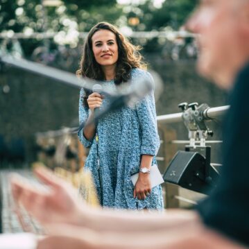 Ich bin Mona und stehe als Journalistin und Moderatorin für verschiedene Formate und Veranstaltungen vor Kameras, hinter Mikros oder auf Bühnen.